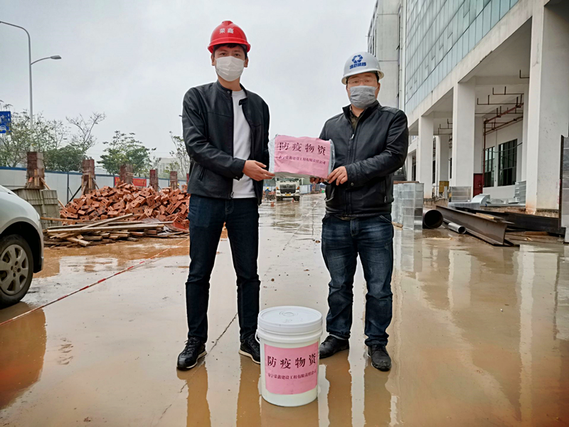 榮鑫公司副總經理黎杰代表公司為項目現(xiàn)場送上防疫物資