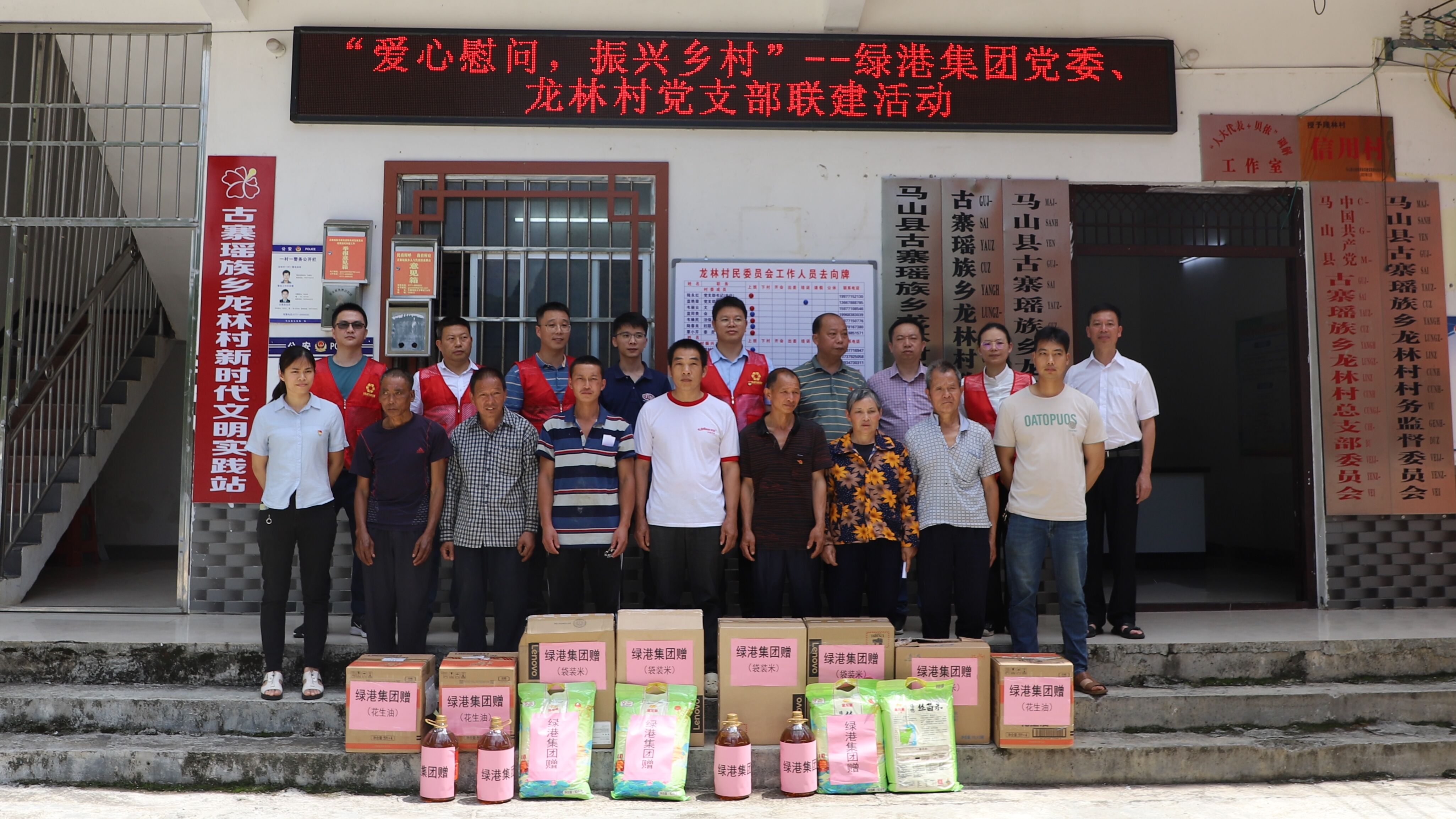 5月29日,綠港集團(tuán)黨委副書記、總經(jīng)理鄧?yán)^慧,黨委委員、副總經(jīng)理陸羿冰,黨委委員、副總經(jīng)理陽(yáng)正輝,以及集團(tuán)黨委辦和萬方公司黨支部的部分同志代表集團(tuán)黨委,到對(duì)口幫扶的馬山縣古寨瑤族鄉(xiāng)龍林村開展村企聯(lián)建慰問活動(dòng)。綠港集團(tuán)派駐龍林村第一書記梁華以及龍林村干部、駐村工作隊(duì)員一起參加了活動(dòng)。